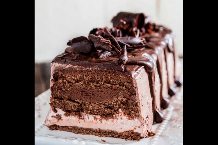 8. ضعي الكيك المجمد في طبق التقديم وصبي فوقه الشوكولاتة المذوبة وقطعيها وقدميها.