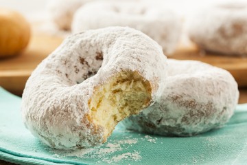 8. اغمسي وجه الدونات وهو ساخن في خليط الزبدة والسكر وضعيه في طبق التقديم وقدميه.