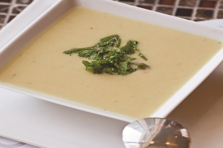 5. يصب في طبق التقديم، ويزيّن بالخس، أو النعناع الأخضر المفروم.