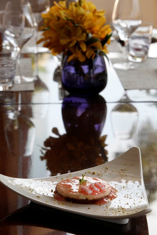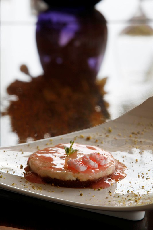 ثم يوضع هذا الطبق في الثلاجة قبل التقديم، ويزيّن براحة الحلقوم والفستق الحلبي المطحون.