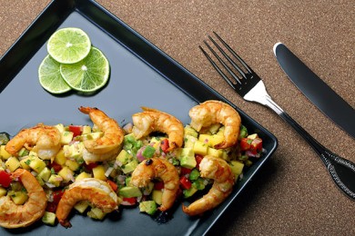 لقد حل موسم المانغو ليتناسب هذا الروبيان المشوي المُتبل بشكل مثالي مع صلصة المانغو والأفوكادو والفلفل الجار (جالابينو) وصلصة الحامض طبق الروبيان الفيتنامي بالمانجو وصلصة الأفوكادو الخالي من السكر تم تحضير هذا الطبق من قبل نادية باريخ (ميلانج دبي) لدليل الوصفات المنزلية الصحية لشهر رمضان من مبادرة “حارب السكري”