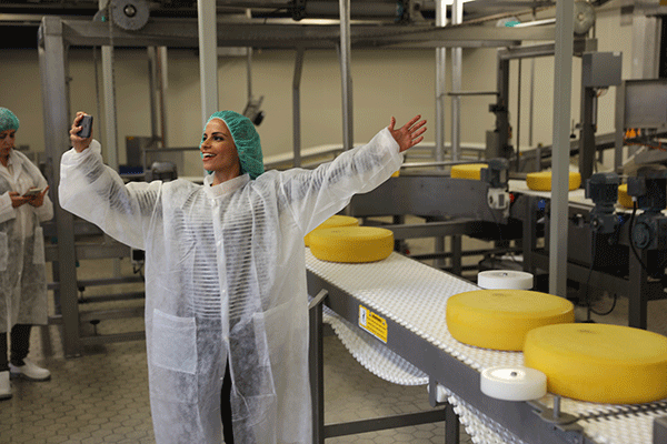 وبعد زيارة المزارع التي تنتج الحليب الطازج والتعرف الى حياة المزارعين عن كثب . زرنا في اليوم التالي مصانع أجبان "فريكو" وهي مصانع" فريسمان كامبينا" friesman campina التي تنتج عدة اصناف من ضمنها اجبان “فريكو" . وقد لفتتنا معايير السلامة الغذائية العالية داخل المصانع حيث كل الغرف تخضع للتعقيم وافضل شروط النظافة . وقد تابعنا كافة مراحل تصنيع اجبان" فريكو" بعد جولة عن كثب في مختلف ارجاء المصنع بدءا بالمواد الخام مرورا بالتصنيع والتمليح وصولا الى مرحلة التغليف والتخزين النهائي قبل ان يتم توزيعها في هولندا وحول العالم. ويتم تخزين حوالي 3 ملايين كيلوجراما من قوالب الاجبان في المصانع حيث تستوعب المخازن كمية هائلة من قوالب الاجبان .
