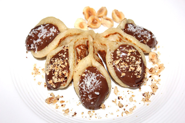 احشي القطايف العصافيري الصغير بعد أن تغلقي جانب منها بملعقة صغيرة من شوكولاتة النوتيلا وزيني بالجوز المفروم أو البندق حسب الرغبة