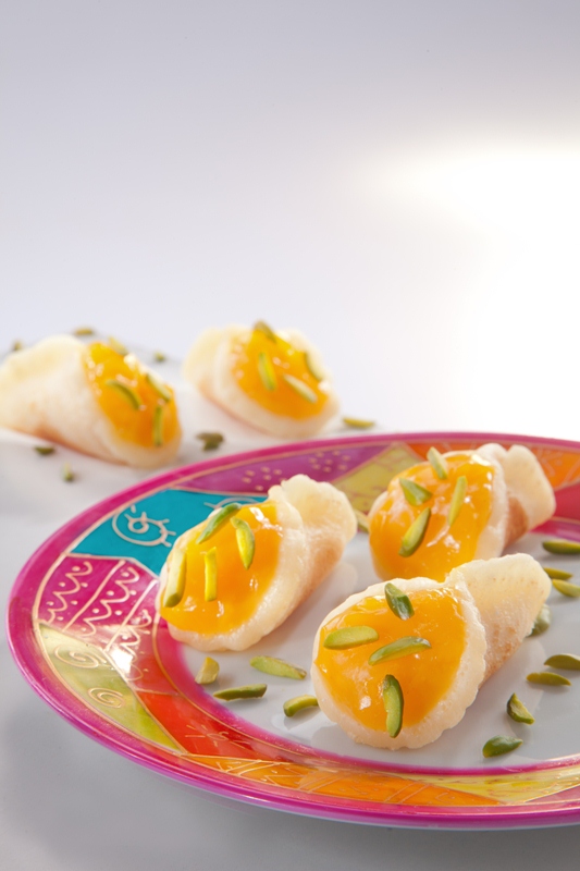 لإعداد مهلبيّة قمر الدين: ضعي، في قدر سميكة القاعدة ومتوسّطة الحجم،2 كوب عصير قمرالدين وملعقة كبيرة من النشا. وقلّبيهما بمضرب شبك يدوي ليذوب النشا ثم ضعي القدر على نار متوسّطة. قلّبي إلى أن يغلي العصير وتحصلي على مهلبيّة سميكة القوام. أضيفي 2 ملعقة صغيرة من ماء الورد وقلّبي. ضعي المهلبيّة في طبق واسع، وغطّي سطحها بقطعة من النايلون، ودعيها إلى أن تبرد تماماً. احشي القطايف العصافيري الصغير بعد أن تغلقي جانب منها وزيني بالفستق الحلبي حسب الرغبة وصبي عليها القليل من القطر