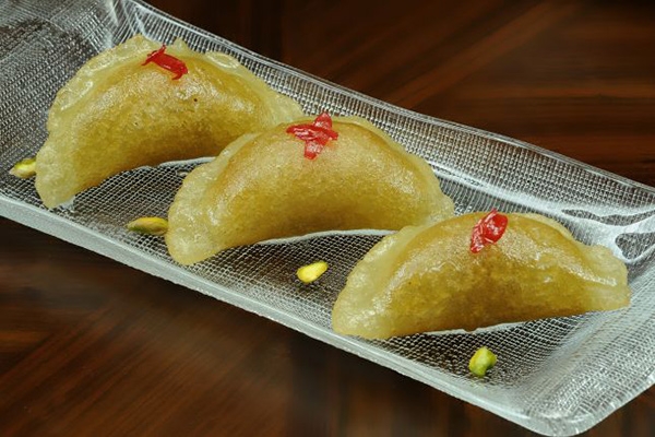 أفرمي 1/4 كوب من كل من : اللوز المقشر، الفستق الحلبي، الجوز والصنوبر، اخلطي المكسرات المفرومة ب 3 ملاعق من السكر البودرة م تحشى القطايف بواسطتها، وتغلق من الطرفين وترص في الصينية. تدهن بالسمن، وتدخل الفرن على حرارة 250 درجة مئوية، لمدة 20 دقيقة حتى تحمر، عند التقديم : تغمر في القطر ثم ترص في طبق التقديم