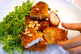 1 يقشر الهليون ويغسل بماء مالح، تقطع البطاطا إلى قطع رقيقة للغاية وتقلى.