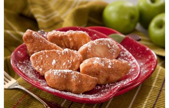 5- ضعي التفاح المقلي في طبق التقديم، وانثري السكر البودرة وقدميها ساخنة.