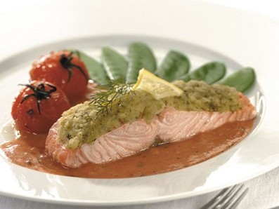 مقادير السالمون مع الطماطم وصلصة الحبق
