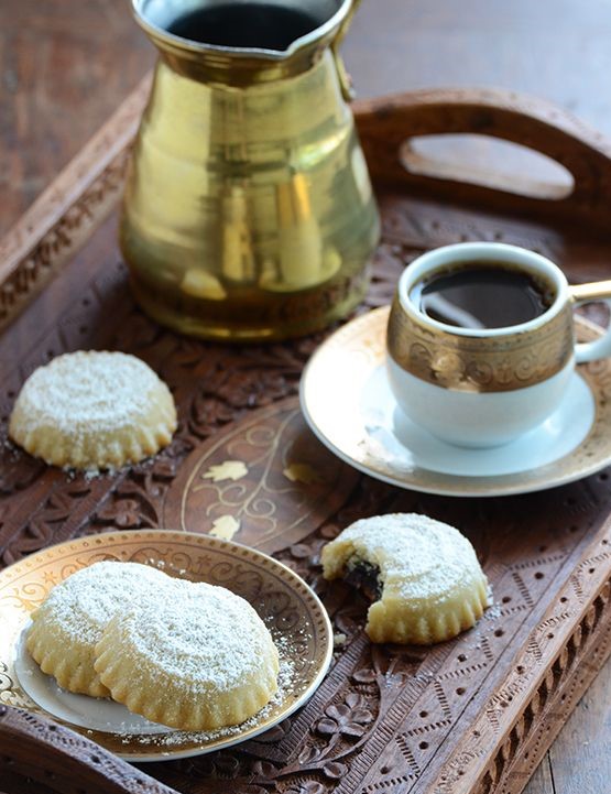 - في حال كنت ستقدمين أكثر من نوع من الحلويات، ضعي كل كعكتين بجانب بعضهما بحيث تكون واحدة منهم مائلة على الأخرى، وكذلك في البيتيفور والغريبة في صينية مزخرفة.