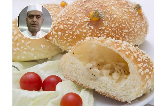-4 تدهن صينيّة الفرن بالقليل من الزيت، وتعدّ كرات متساوية من العجين، ثم تفرد كلّ منها على حدة، تحشى بالجبن وتلفّ بالطريقة المرغوبة.