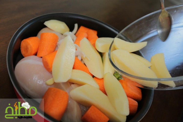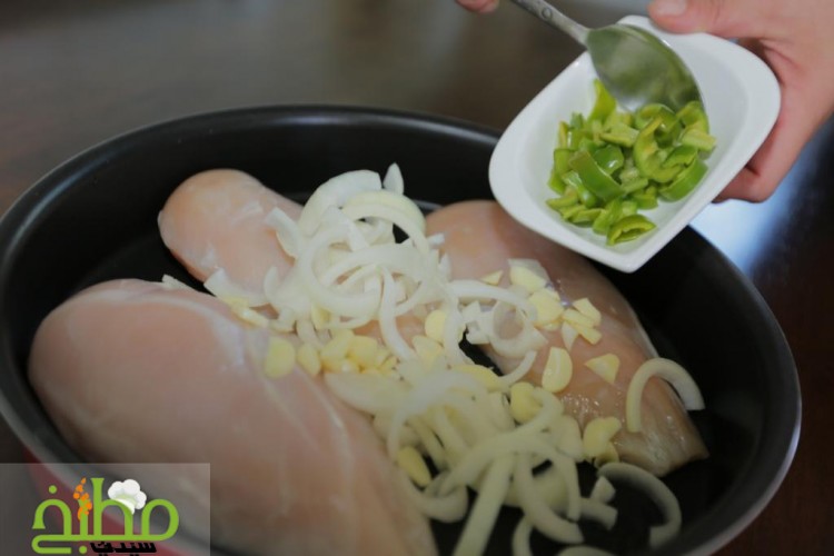 مقادير دجاج وخضار متبلة بالفرن خطوة بخطوة بالصور