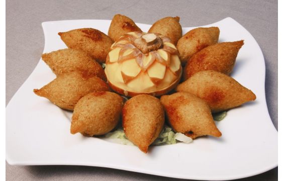 6- توضع كميّة قليلة من عجينة الكبّة في اليد، وتُنقر بالإصبع المرطّب بالماء أو الزيت، تُحشى بواسطة ملعقة صغيرة بالحشو، ثمّ تُغلق وتوضع جانباً.