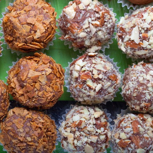 6. غطي الكرات بالبندق وجوز الهند والكاكاو.