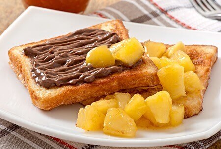 3. إدهني كريمة الشوكولاتة على جانب واحد من شريحة البريوش وضعى شريحة بريوش آخرى فوقها.
