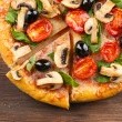 1. لإعداد العجينة: يُخلط 165 ميلليليترًا من الماء الدافئ، مع زيت الزيتون. يُنخل الدقيق. ويُضاف الدقيق، مع الملح والخميرة وخليط زيت الزيتون إلى وعاء. تُخلط المكوِّنات باليدين، حتَّى تمتزج مع بعضها البعض. ثمَّ، تُفرد العجينة على سطح منثور عليه الدقيق والفرخة، وتُدعك جيِّدًا باليدين لربع ساعة. ثمَّ، تُشكَّل على هيئة كرة، وتُحفظ داخل وعاء مدهون بزيت الزيتون، وتُغطَّى بورق النايلون، وتُدع جانبًا لساعتين، وذلك حتَّى يتضاعف حجمها.
