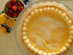 10. قبل التقديم وزعي خليط الجبن الكريمي فوق عجينة التارت المخبوزة ووزعي الفواكة.