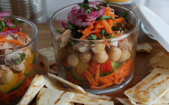 طريقة تحضير مقادير سلطة دجاج مع الحمّص والخضراوات لرجيم مثالي