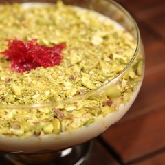 7. يرشّ الفستق على الوجه بالتساوي قبل الأكل بقليل.