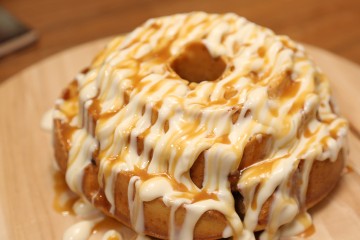 6. بعد نضوج الكيكة، أخرجيها من الفرن واتركيها لتبرد قليلاً، ثم صبي فوقها الصوص التي أعددتها، وقدّميها باردة الى ضيوفك وأسرتك.