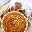 3. في قالب مخصص للكيكة، صبي نصف كمية الخليط ثم ضعي فوقه القرفة والسكر الناعم مخلوطين سوياً، ثم صبي النصف المتبقي من مزيج الكيكة.