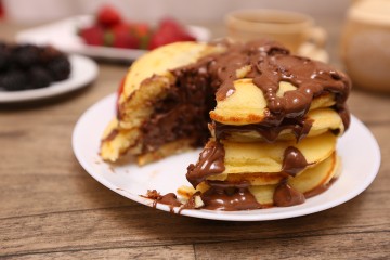 2. ادهني الكريمة المخفوقة بالكاكاو على النصف الأسفل من الكيك.
