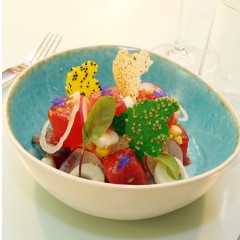 1. ضعي البطيخ والخيار والسكر وعصير الليمون في الخلاط الكهربائي.