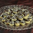 3. تُمدُّ كلُّ كرة من العجين قليلًا، حتَّى تستوعب الحشو في منتصفها، مع الحرص عدم المبالغة بالكمِّ المضاف من هذا الأخير. يُغلق العجين على الحشو بإحكام، فيوضع في قالب المعمول، القالب الذي يُضغط عليه، بغية الحصول على شكل مزخرف للقرص في الجهة العليا منه. تُكرَّر العمليَّة حتَّى نفاذ كم العجين.