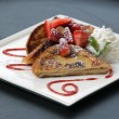 4. غمسي التوست بخليط البيض ثم ضعي الشرائح في المقلاة واتركيها لحوالي دقيقتان حتى تتحمر.