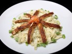 6. ضعي الباستا في طبق التقديم ووزعي الصوص الأبيض فوقها وقدميها ساخنة.