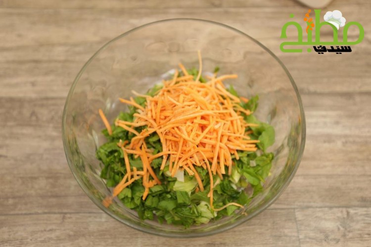 ضعي الخس المفروم خشن بوعاء الخلط