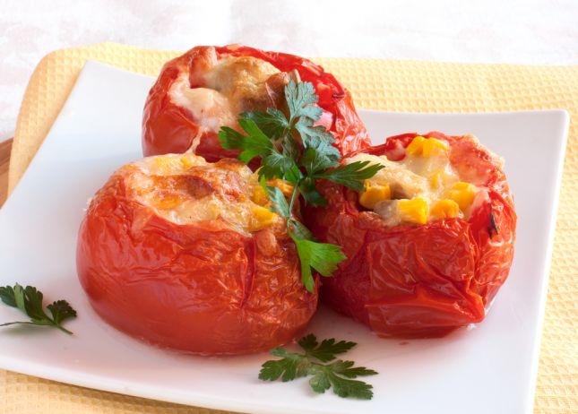 2. احشي الطماطم بالجبنة الشيدر المبشورة واشوي الطماطم على الشواية أو في الفرن حتى تذوب الجبنة